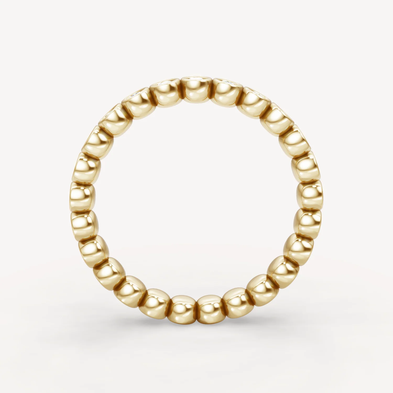 This eternity band features a row of full bezel-set round stones (approximate total carat weight of 0.63). Crafted to last, the bold beaded band adds a touch of texture and uniqueness. Available in 14k yellow gold, white gold, rose gold, or platinum, this ring is a perfect modern twist to the traditional eternity band.