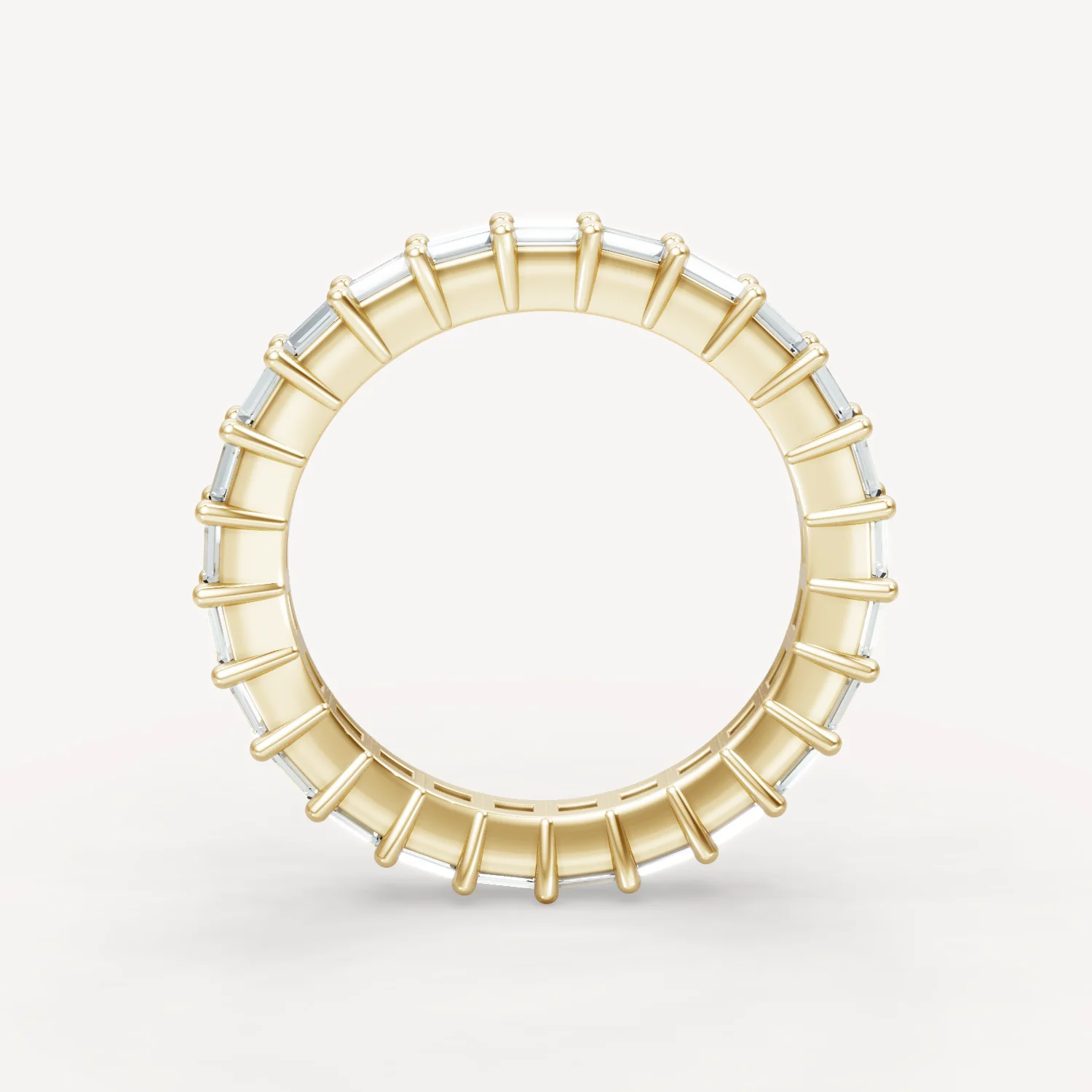 This eternity band features east-west set baguette stones (approximately 1.25 carats total weight), offering a modern and elegant design. Perfect for celebrating a special milestone or as a stylish addition to any jewelry collection, this band provides a sleek, contemporary look with timeless appeal.