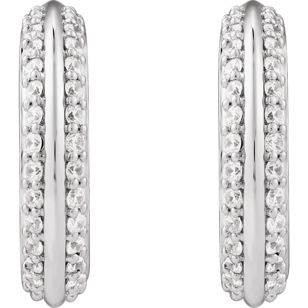 Our Knife Cut Hoop Earrings feature a sleek and modern design with a sharp, knife-edge profile, adorned with stones (approximate 0.625 carat total weight) set along the front for added brilliance. Crafted with a secure hinged closure for ease and comfort, these earrings are available in 14K yellow gold, white gold, or rose gold. Their bold yet elegant design makes them perfect for both everyday wear and special occasions.