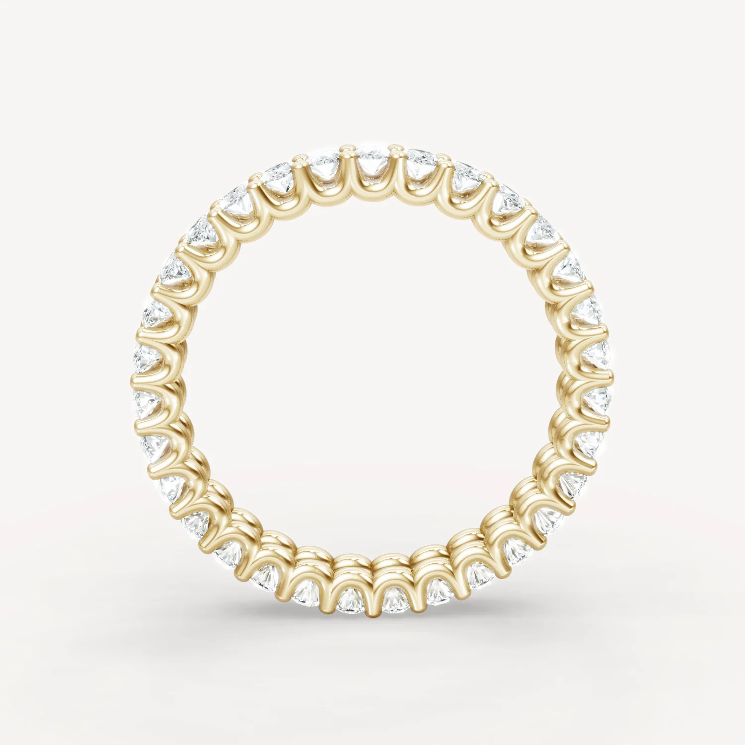 This Scalloped Eternity Band showcases a seamless row of dazzling oval-cut accent stones (approximately 21 4x3mm oval stones with an average of 3.15 CTW depending on finger size). The scalloped design with an open side gallery creates a delicate, airy structure, allowing maximum light to enhance the brilliance of each accent stone. Perfect as a wedding band, stacking ring, or standalone statement, this design is available in 14k yellow gold, white gold, rose gold, or platinum.