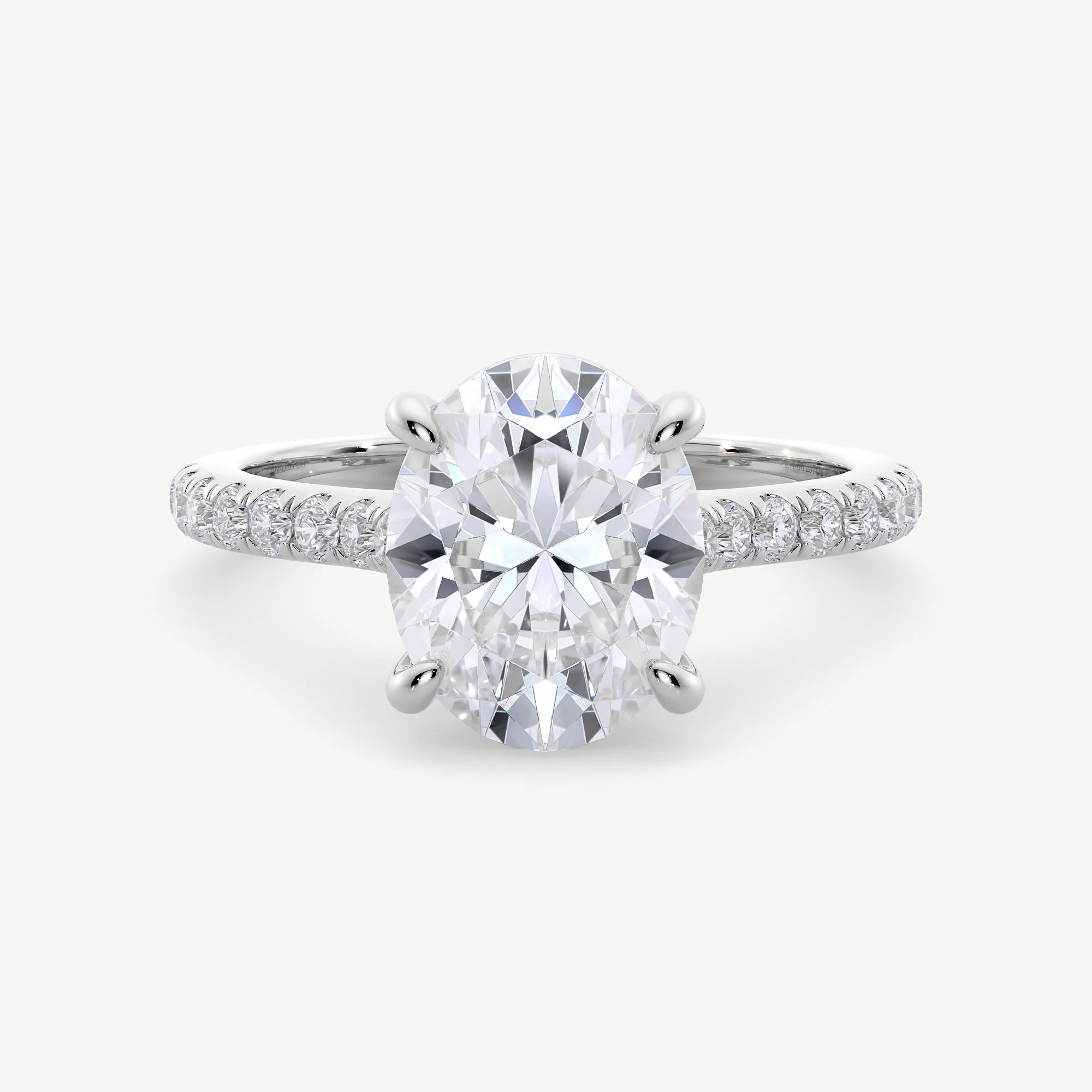 - Stunning Oval Center Stone: The lab-grown, oval-cut diamond takes center stage, held securely in a cathedral for stability and beauty.